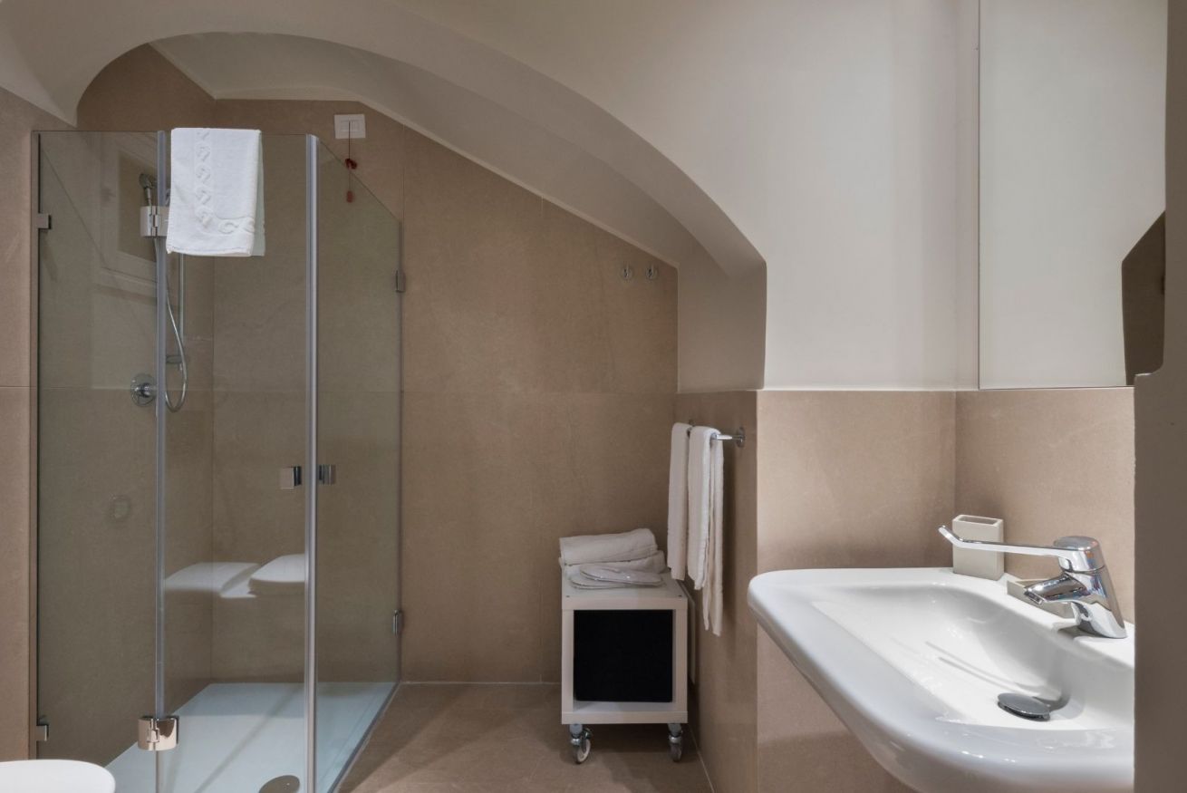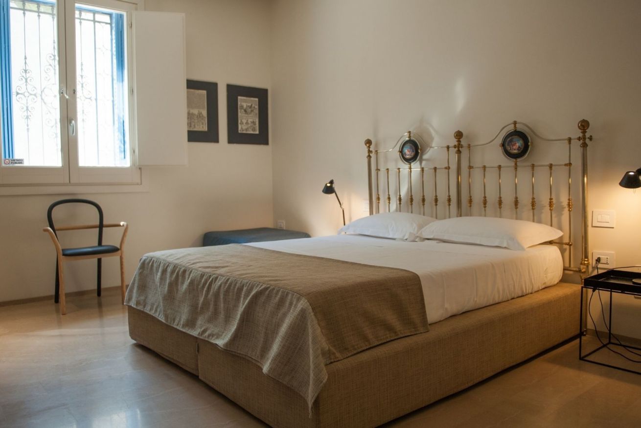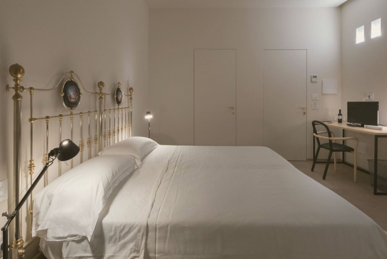 La camera è connotata dal sapiente accostamento del mobilio originale con elementi di design che ne accentuano l’identità. Arredata con scrivania e poltroncina, si presta anche a chi in viaggio per affari è alla ricerca di un luogo confortevole dove poter continuare a lavorare. Su richiesta, un pouf può diventare un letto aggiuntivo.